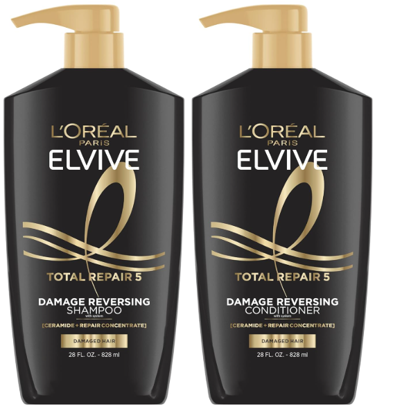 L'Oreal Paris Elvive Total Repair 5 Repairing Shampoo and Conditioner for Damaged Hair, 28 Ounce (Set of 2)(Packaging May Vary)