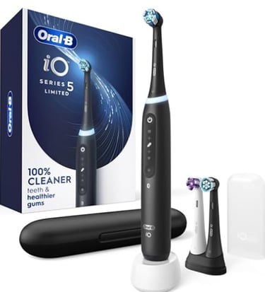 Oral-B iO Deep Clean + Whiten Rechargeable Electric Toothbrush with Visible Pressure Sensor, 2 Minute Timer, 5 Cleaning Settings, 1 iO5 Limited, 3 Too