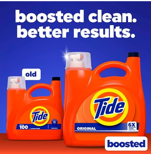 Shop NowTide Liquid Laundry Detergent, Original Scent, 125 fl oz, 100 Loads, Boosted Clean Even in Cold Water with Concentrated Washing Soap